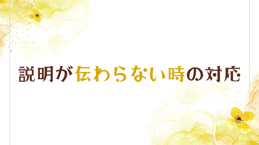 - 説明が伝わらない時の伝え方・家族確認の提案、